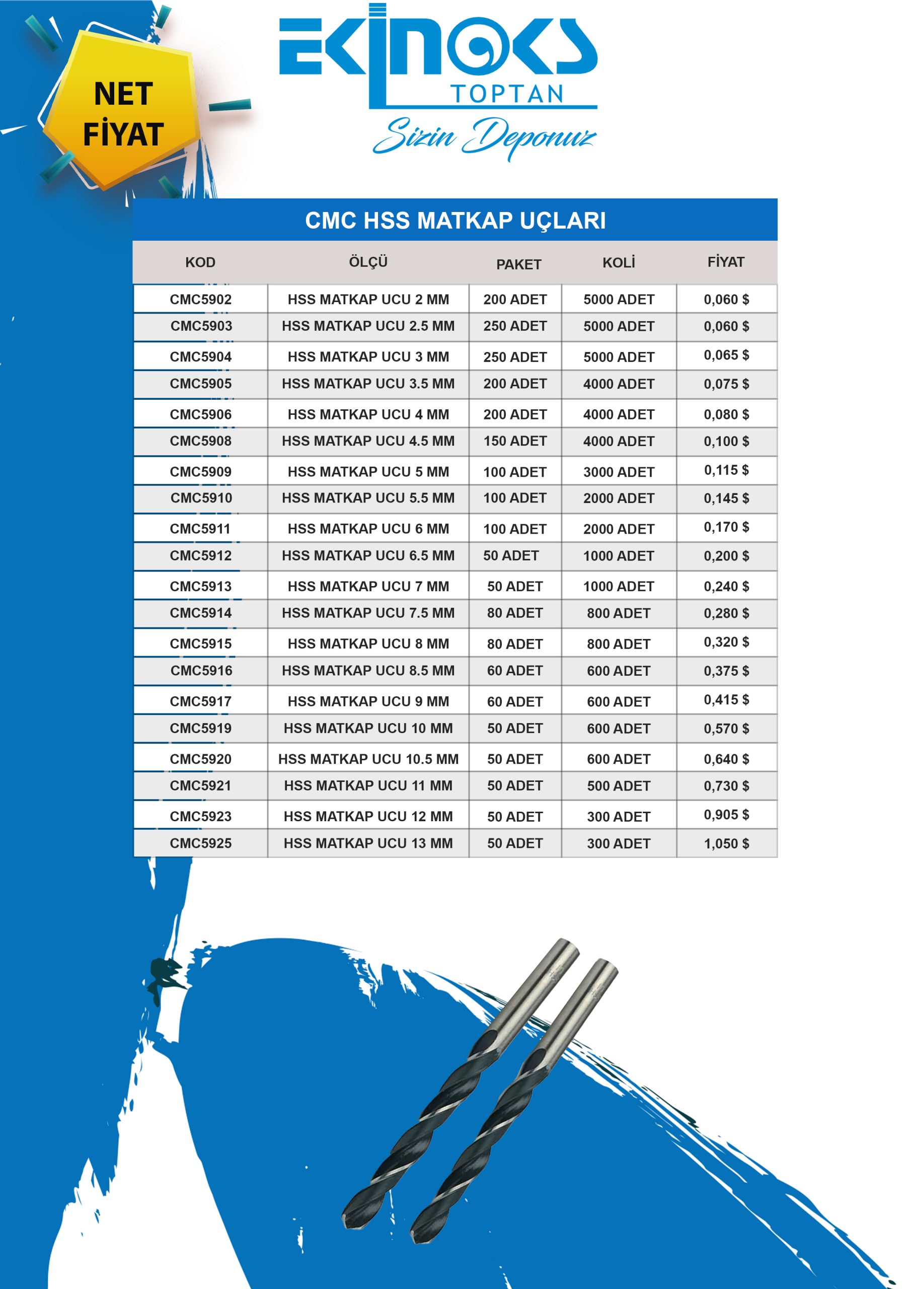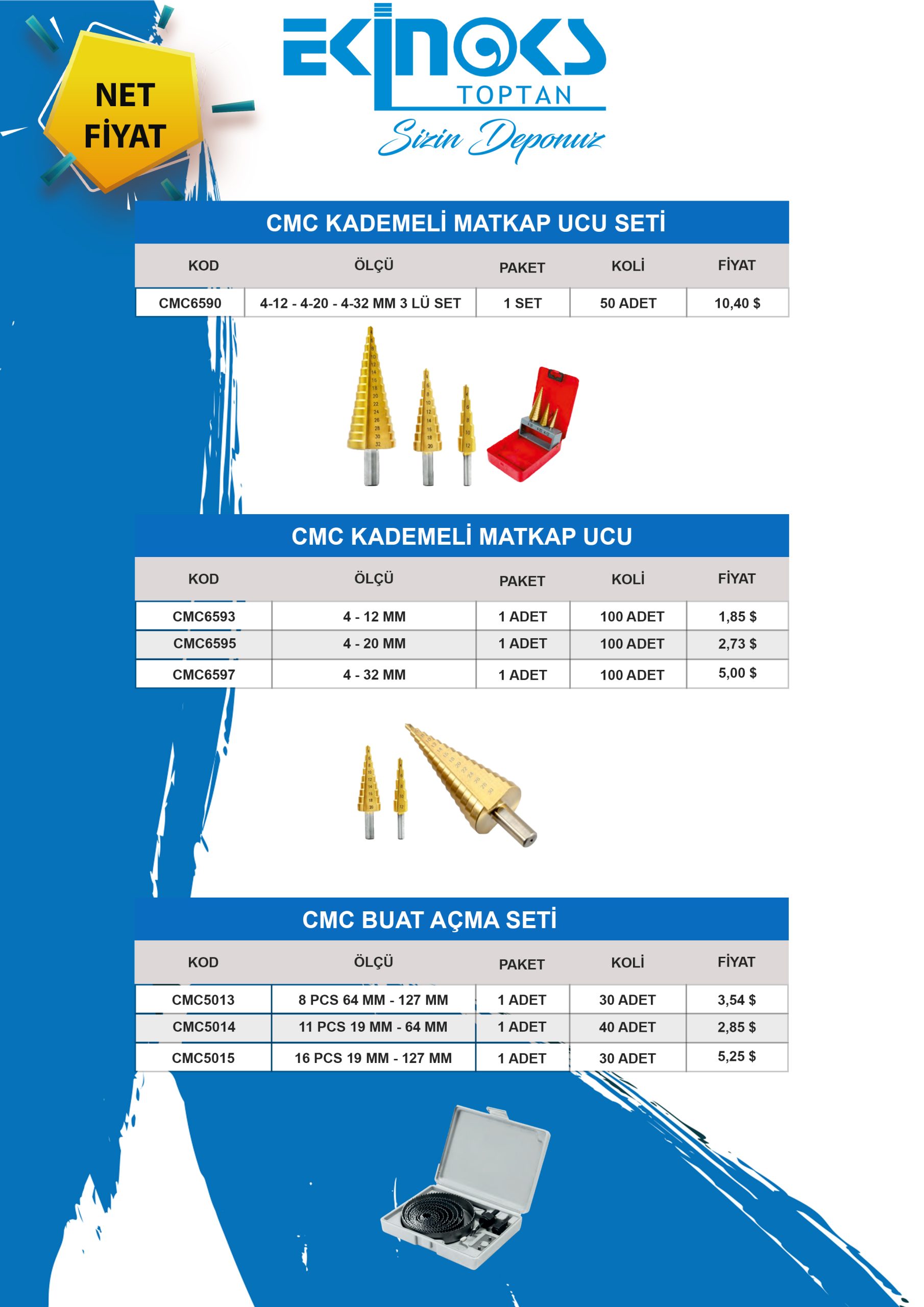 CMC KADEMELİ MATKAP UÇLARI & PANÇLAR