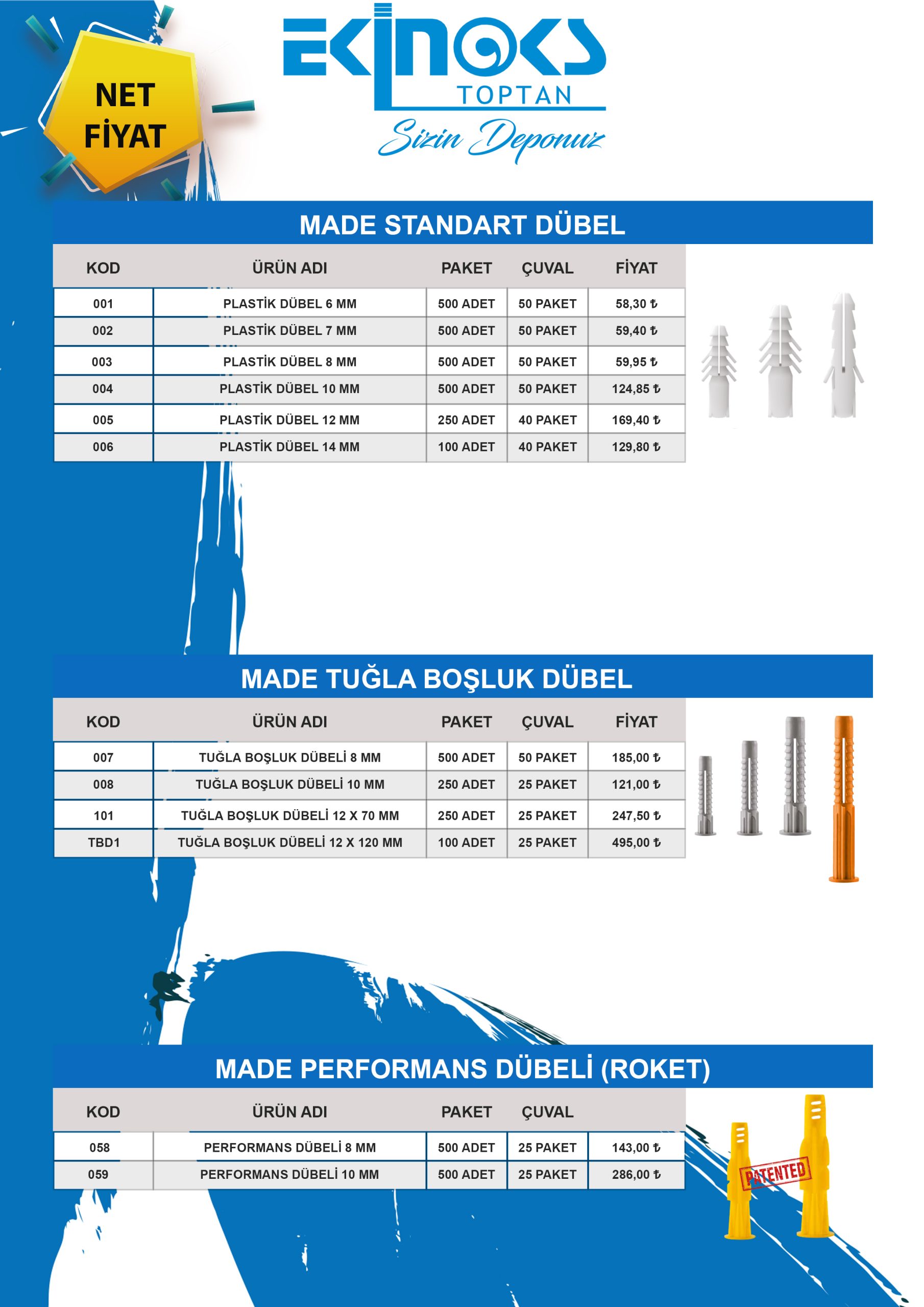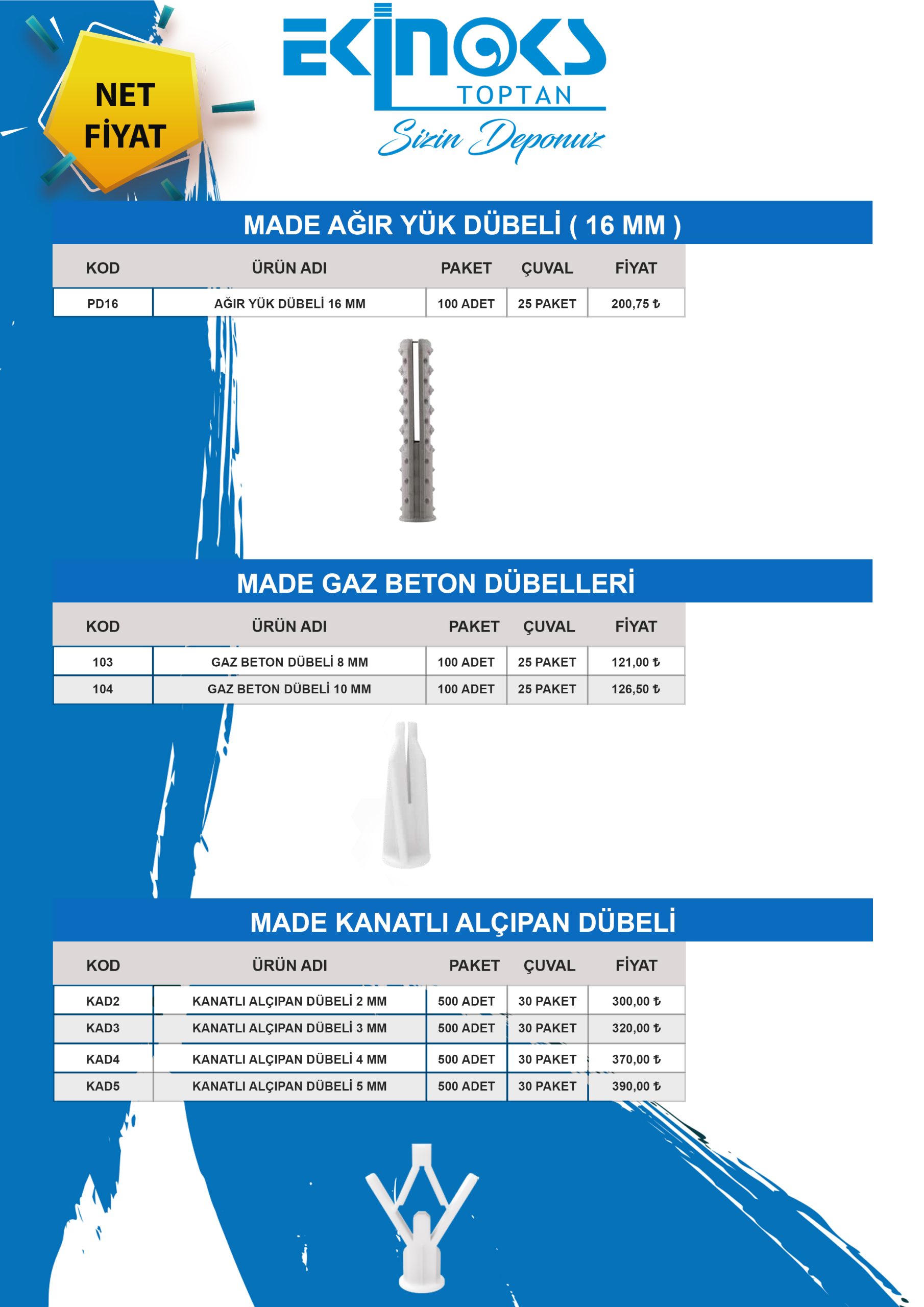 MADE AĞIR YÜK & GAZ BETON & KANATLI ALÇIPAN DÜBELLERİ